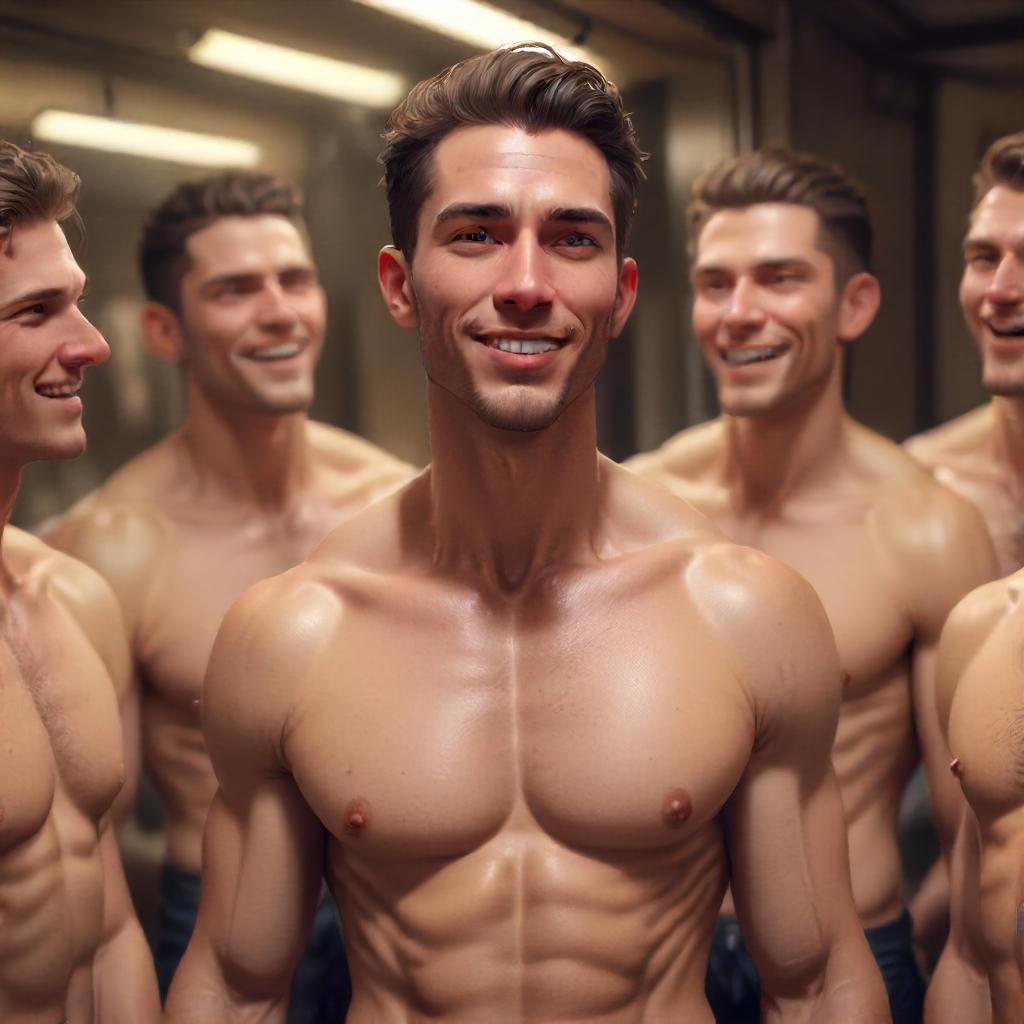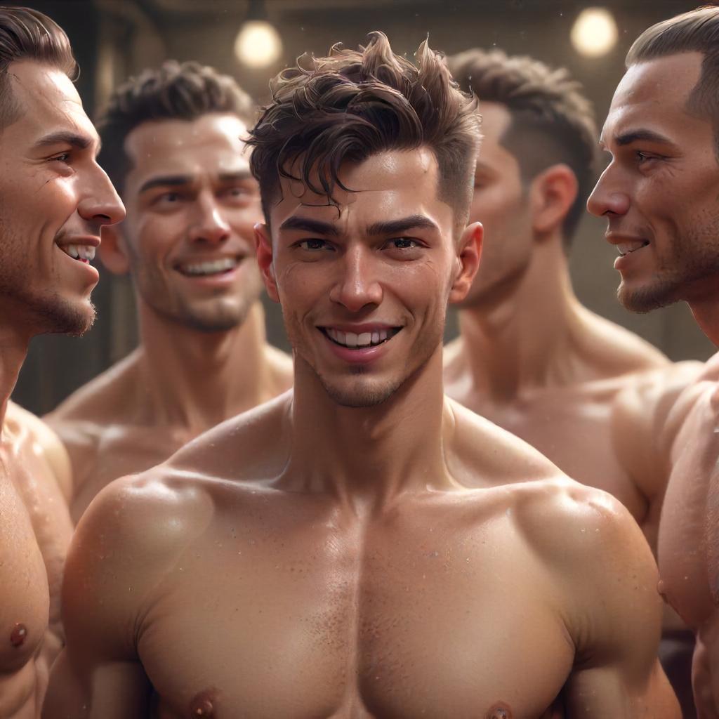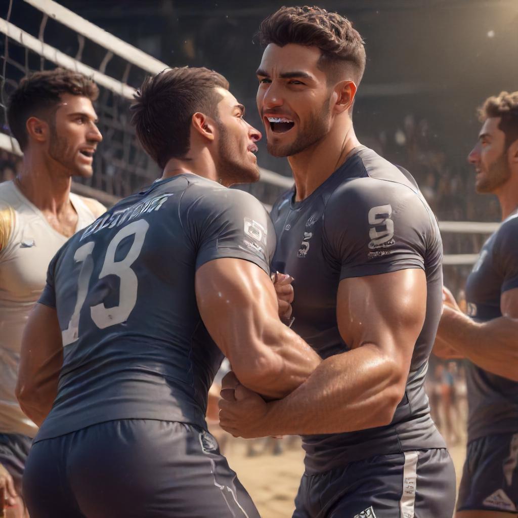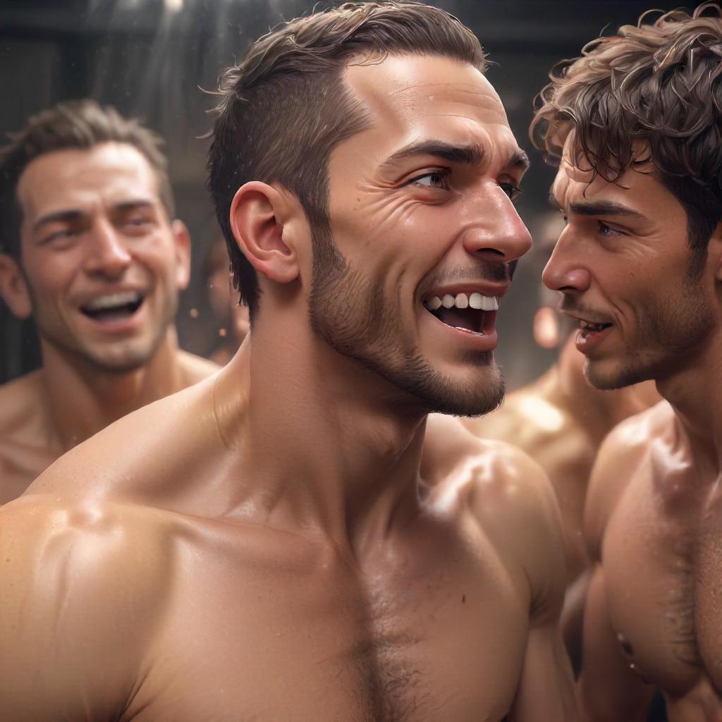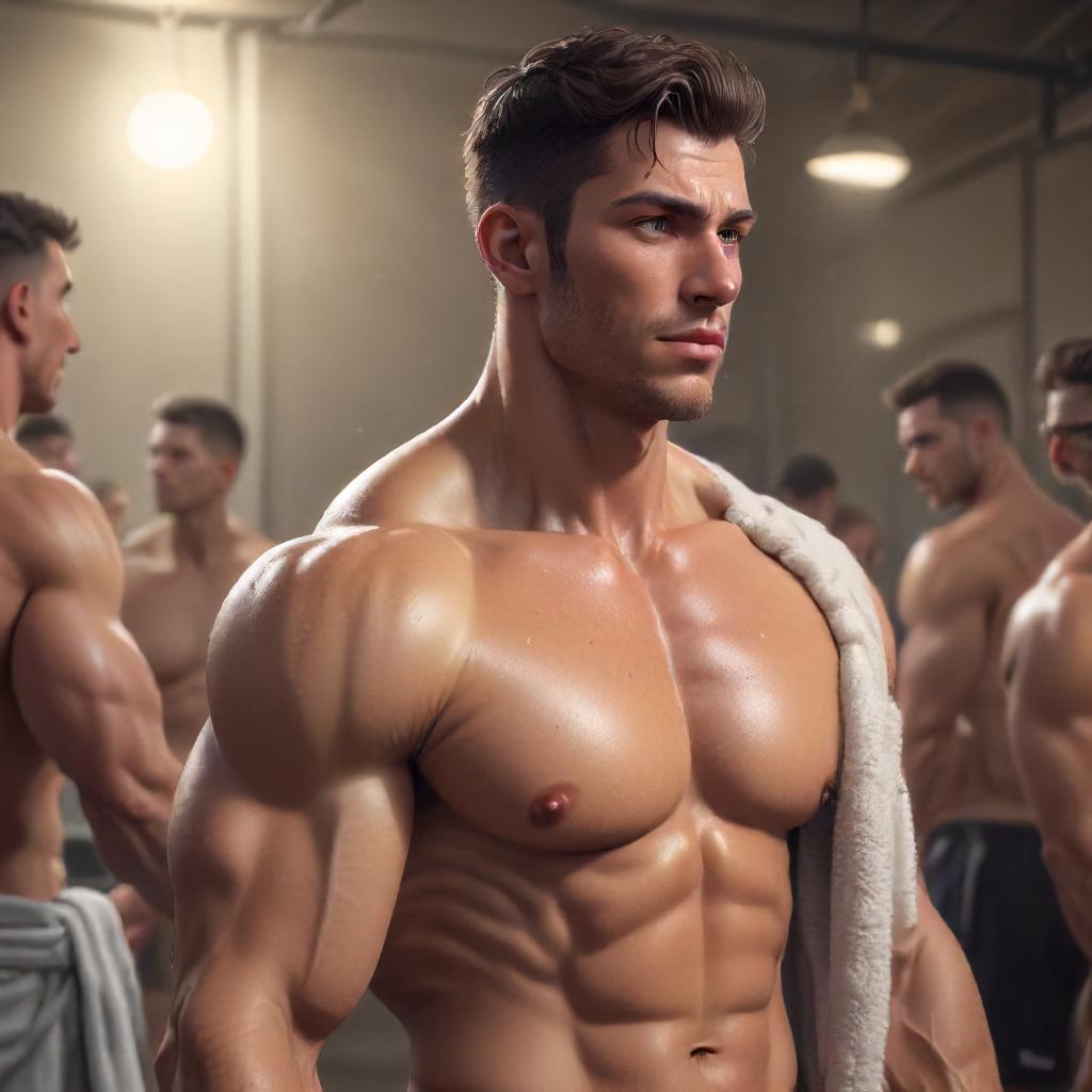The changing room was a symphony of male bonding, the banter laced with double entendres and laughter. In one corner, two of their teammates were engaged in a mock wrestling match, their sweaty bodies entwined in a playful struggle. In another, a group was comparing bicep sizes, flexing and posing with exaggerated bravado.